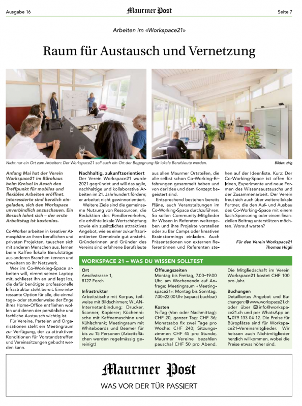 Werde als Vereinsmitglied Teil unserer Community und du kannst Workspace21 mit deiner Stimme mitgestalten. Für CHF 100 pro Jahr profitierst du vom günstigerem Angebot (alle Preise in Klammern sind für Nichtmitglieder). Ausserdem kannst du kostenlos an allen Workspace21 Anlässen und Events teilnehmen.