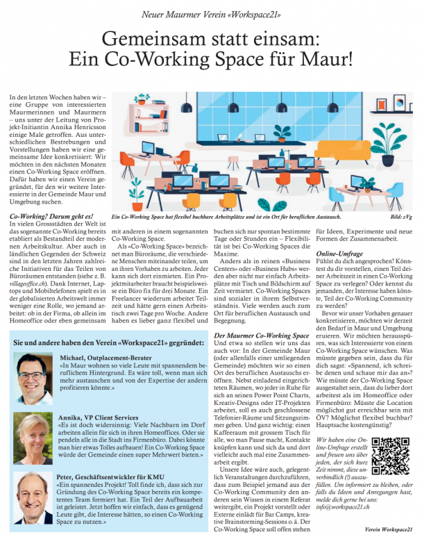 Wir sind noch eine kleine Gruppe und möchte noch besser verstehen, was eure Meinung zu einem Co-Working in Maur ist.