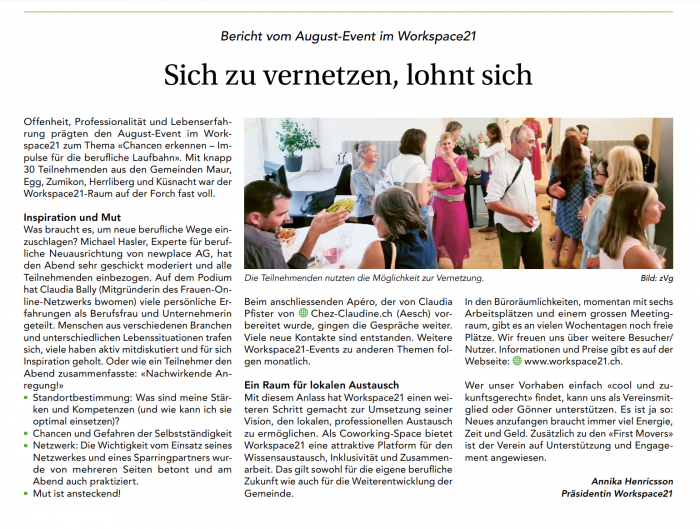 Werde als Vereinsmitglied Teil unserer Community und du kannst Workspace21 mit deiner Stimme mitgestalten. Für CHF 100 pro Jahr profitierst du vom günstigerem Angebot (alle Preise in Klammern sind für Nichtmitglieder). Ausserdem kannst du kostenlos an allen Workspace21 Anlässen und Events teilnehmen.